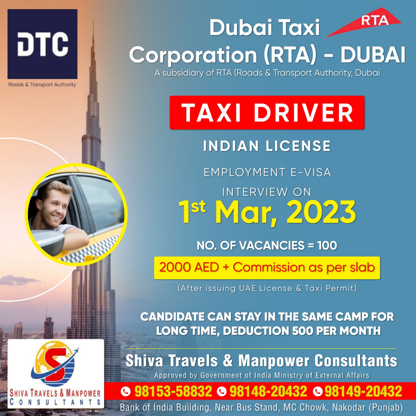 UAE ਦੀ Dubai Taxi Corporation ਨੂੰ ਕਾਰੀਗਰਾਂ ਦੀ ਭਾਰੀ ਸੰਖਿਆਂ ਵਿੱਚ ਲੋੜ ਹੈ ਚੰਗੀ ਤਨਖਾਹ, ਉਵਰ ਟਾਇਮ ਅਤੇ ਹੋਰ ਸਹੂਲਤਾਂ l Interview On 01 Mar 2023 ਸੰਪਰਕ ਕਰੋ . Shiva Travel & manpowar Consultants 9814920432 ਸਾਡਾ whatsapp ਗਰੁੱਪ join ਕਰੋ ਨਵੀ ਡਿਮਾਂਡ ਲਈ https://chat.whatsapp.com/F88Q4Bpm089KHXCVk6LENt Visit us: https://shivatradetestcentre.com/applynow/ ਹੋਰ ਡੀਮਾਂਡ ਲਈ ਜਾਂ ਹੋਰ…