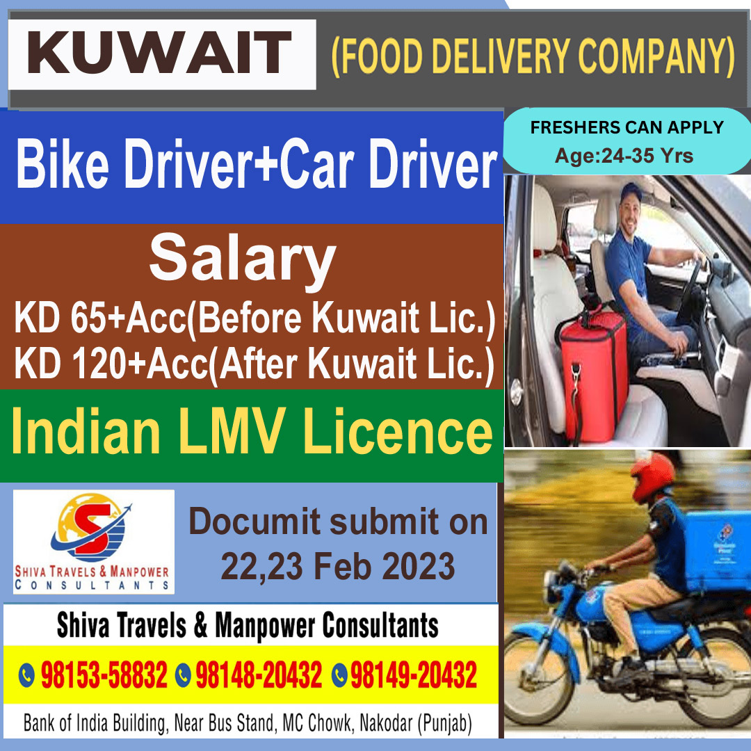 KUWAIT ਦੀ Food Delivery Company ਨੂੰ ਕਾਰੀਗਰਾਂ ਦੀ ਭਾਰੀ ਸੰਖਿਆਂ ਵਿੱਚ ਲੋੜ ਹੈ ਚੰਗੀ ਤਨਖਾਹ, ਉਵਰ ਟਾਇਮ ਅਤੇ ਹੋਰ ਸਹੂਲਤਾਂ l Document Submit On 22,23 Fab 2023 ਸੰਪਰਕ ਕਰੋ . Shiva Travel & manpowar Consultants 9814920432 ਸਾਡਾ whatsapp ਗਰੁੱਪ join ਕਰੋ ਨਵੀ ਡਿਮਾਂਡ ਲਈ https://chat.whatsapp.com/F88Q4Bpm089KHXCVk6LENt Visit us: https://shivatradetestcentre.com/applynow/ ਹੋਰ ਡੀਮਾਂਡ ਲਈ ਜਾਂ…
