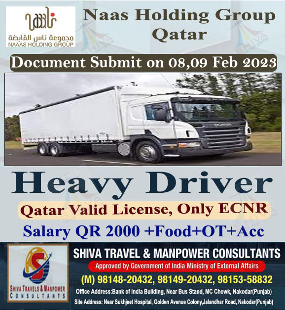 QATAR ਦੀ Nass Holding Company ਨੂੰ ਕਾਰੀਗਰਾਂ ਦੀ ਭਾਰੀ ਸੰਖਿਆਂ ਵਿੱਚ ਲੋੜ ਹੈ ਚੰਗੀ ਤਨਖਾਹ, ਉਵਰ ਟਾਇਮ ਅਤੇ ਹੋਰ ਸਹੂਲਤਾਂ l Document Submit On 08,09 Feb 2023 ਸੰਪਰਕ ਕਰੋ . Shiva Travel & manpowar Consultants 9814920432 ਸਾਡਾ whatsapp ਗਰੁੱਪ join ਕਰੋ ਨਵੀ ਡਿਮਾਂਡ ਲਈ https://chat.whatsapp.com/F88Q4Bpm089KHXCVk6LENt Visit us: https://shivatradetestcentre.com/applynow/ ਹੋਰ ਡੀਮਾਂਡ ਲਈ ਜਾਂ…