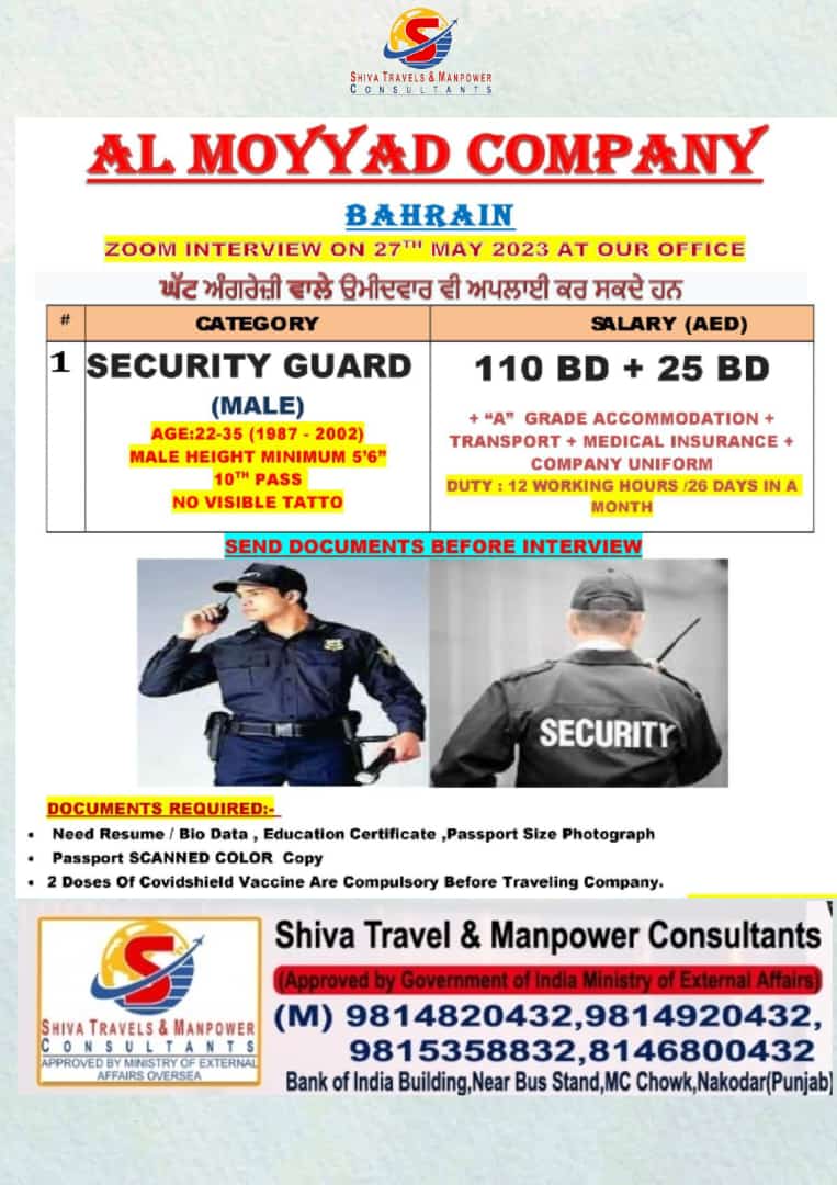 Bahrain ਦੀ Al Moyyad Company ਨੂੰ ਕਾਰੀਗਰਾਂ ਦੀ ਭਾਰੀ ਸੰਖਿਆਂ ਵਿੱਚ ਲੋੜ ਹੈ ਚੰਗੀ ਤਨਖਾਹ, ਉਵਰ ਟਾਇਮ ਅਤੇ ਹੋਰ ਸਹੂਲਤਾਂ l Interview on 27 May 2023 ਸੰਪਰਕ ਕਰੋ . Shiva Travel & manpowar Consultants 9814920432 ਸਾਡਾ whatsapp ਗਰੁੱਪ join ਕਰੋ ਨਵੀ ਡਿਮਾਂਡ ਲਈ https://chat.whatsapp.com/F88Q4Bpm089KHXCVk6LENt Visit us: https://shivatradetestcentre.com/applynow/ ਹੋਰ ਡੀਮਾਂਡ ਲਈ…