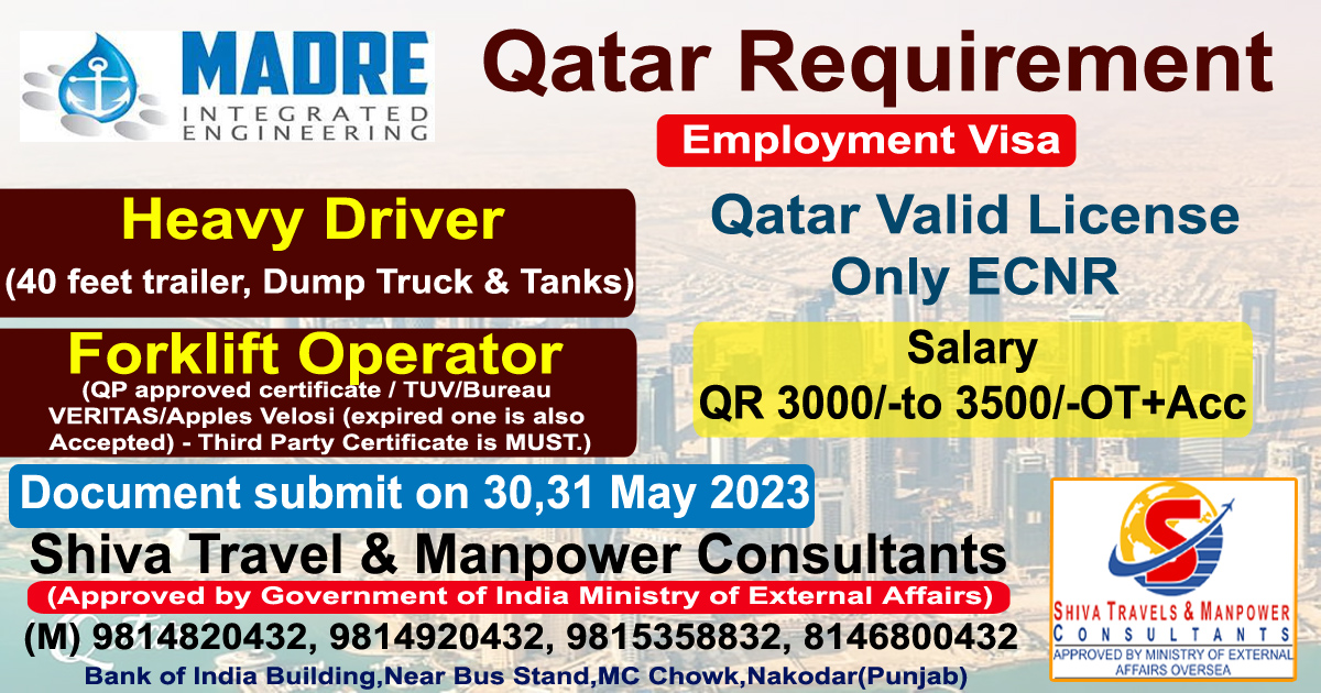 Qatar ਦੀ Madre Company ਨੂੰ ਕਾਰੀਗਰਾਂ ਦੀ ਭਾਰੀ ਸੰਖਿਆਂ ਵਿੱਚ ਲੋੜ ਹੈ ਚੰਗੀ ਤਨਖਾਹ, ਉਵਰ ਟਾਇਮ ਅਤੇ ਹੋਰ ਸਹੂਲਤਾਂ l Document Submit on 30,31 May 2023 ਸੰਪਰਕ ਕਰੋ . Shiva Travel & manpowar Consultants 9814920432 ਸਾਡਾ whatsapp ਗਰੁੱਪ join ਕਰੋ ਨਵੀ ਡਿਮਾਂਡ ਲਈ https://chat.whatsapp.com/F88Q4Bpm089KHXCVk6LENt Visit us: https://shivatradetestcentre.com/applynow/ ਹੋਰ ਡੀਮਾਂਡ ਲਈ…