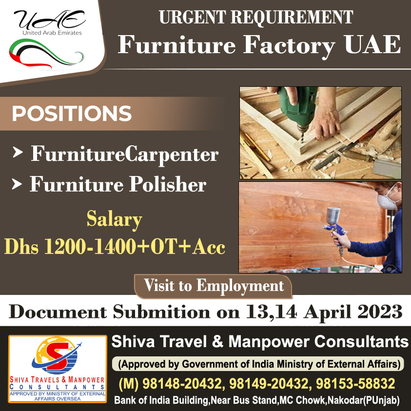 UAE ਦੀ Company ਨੂੰ ਕਾਰੀਗਰਾਂ ਦੀ ਭਾਰੀ ਸੰਖਿਆਂ ਵਿੱਚ ਲੋੜ ਹੈ ਚੰਗੀ ਤਨਖਾਹ, ਉਵਰ ਟਾਇਮ ਅਤੇ ਹੋਰ ਸਹੂਲਤਾਂ l Document Submit On 14,15 April 2023 ਸੰਪਰਕ ਕਰੋ . Shiva Travel & manpowar Consultants 9814920432 ਸਾਡਾ whatsapp ਗਰੁੱਪ join ਕਰੋ ਨਵੀ ਡਿਮਾਂਡ ਲਈ https://chat.whatsapp.com/F88Q4Bpm089KHXCVk6LENt Visit us: https://shivatradetestcentre.com/applynow/ ਹੋਰ ਡੀਮਾਂਡ ਲਈ ਜਾਂ ਹੋਰ ਜਾਣਕਾਰੀ…