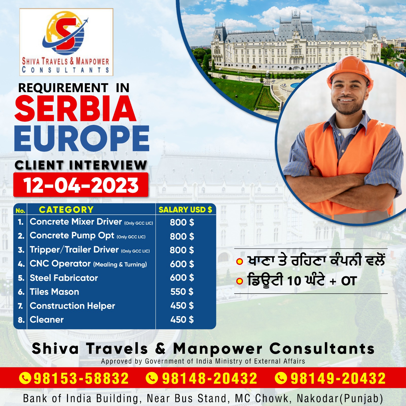 Serbia ਦੀ Company ਨੂੰ ਕਾਰੀਗਰਾਂ ਦੀ ਭਾਰੀ ਸੰਖਿਆਂ ਵਿੱਚ ਲੋੜ ਹੈ ਚੰਗੀ ਤਨਖਾਹ, ਉਵਰ ਟਾਇਮ ਅਤੇ ਹੋਰ ਸਹੂਲਤਾਂ l Interview On 12 April 2023 ਸੰਪਰਕ ਕਰੋ . Shiva Travel & manpowar Consultants 9814920432 ਸਾਡਾ whatsapp ਗਰੁੱਪ join ਕਰੋ ਨਵੀ ਡਿਮਾਂਡ ਲਈ https://chat.whatsapp.com/F88Q4Bpm089KHXCVk6LENt Visit us: https://shivatradetestcentre.com/applynow/ ਹੋਰ ਡੀਮਾਂਡ ਲਈ ਜਾਂ ਹੋਰ ਜਾਣਕਾਰੀ ਲਈ…