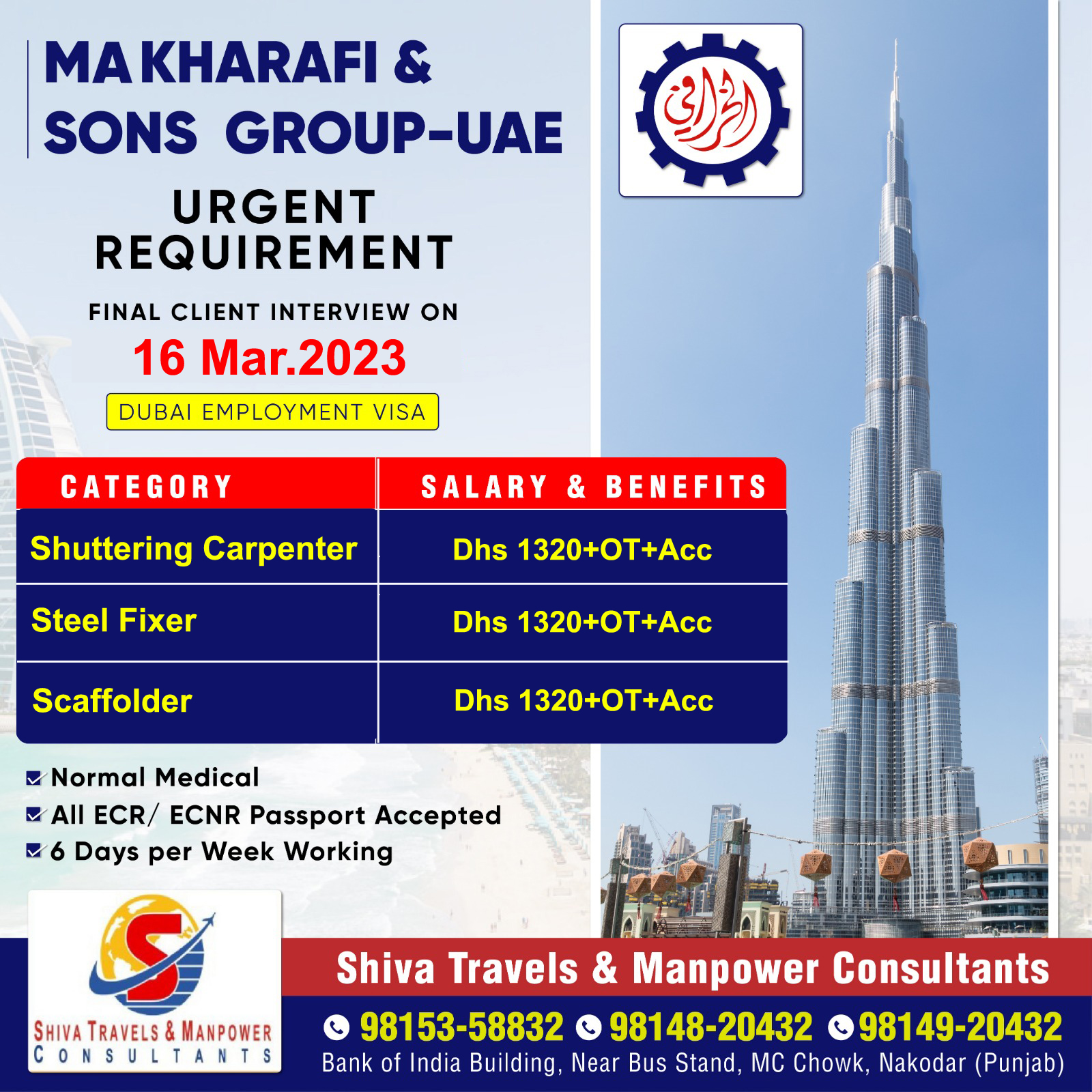 UAE ਦੀ Company ਨੂੰ ਕਾਰੀਗਰਾਂ ਦੀ ਭਾਰੀ ਸੰਖਿਆਂ ਵਿੱਚ ਲੋੜ ਹੈ ਚੰਗੀ ਤਨਖਾਹ, ਉਵਰ ਟਾਇਮ ਅਤੇ ਹੋਰ ਸਹੂਲਤਾਂ l Interview On 15 Mar 2023 ਸੰਪਰਕ ਕਰੋ . Shiva Travel & manpowar Consultants 9814920432 ਸਾਡਾ whatsapp ਗਰੁੱਪ join ਕਰੋ ਨਵੀ ਡਿਮਾਂਡ ਲਈ https://chat.whatsapp.com/F88Q4Bpm089KHXCVk6LENt Visit us: https://shivatradetestcentre.com/applynow/ ਹੋਰ ਡੀਮਾਂਡ ਲਈ ਜਾਂ ਹੋਰ ਜਾਣਕਾਰੀ ਲਈ…