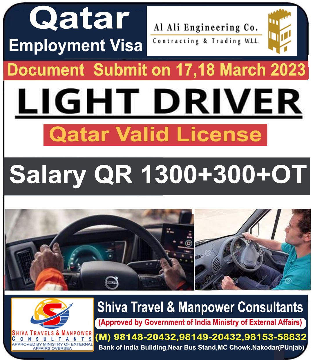 Qatar ਦੀ Al Ali Engineering Company ਨੂੰ ਕਾਰੀਗਰਾਂ ਦੀ ਭਾਰੀ ਸੰਖਿਆਂ ਵਿੱਚ ਲੋੜ ਹੈ ਚੰਗੀ ਤਨਖਾਹ, ਉਵਰ ਟਾਇਮ ਅਤੇ ਹੋਰ ਸਹੂਲਤਾਂ l Document Submit On 17,18 Mar 2023 ਸੰਪਰਕ ਕਰੋ . Shiva Travel & manpowar Consultants 9814920432 ਸਾਡਾ whatsapp ਗਰੁੱਪ join ਕਰੋ ਨਵੀ ਡਿਮਾਂਡ ਲਈ https://chat.whatsapp.com/F88Q4Bpm089KHXCVk6LENt Visit us: https://shivatradetestcentre.com/applynow/ ਹੋਰ ਡੀਮਾਂਡ ਲਈ…