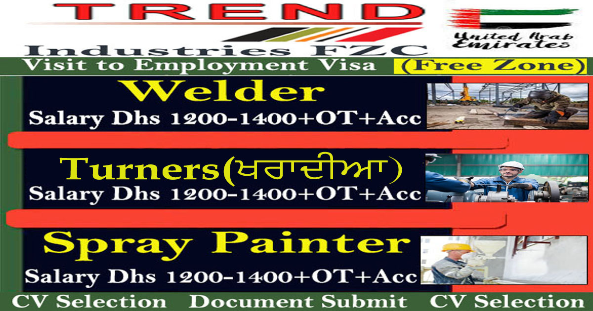 UAE ਦੀ Trands Company ਨੂੰ ਕਾਰੀਗਰਾਂ ਦੀ ਭਾਰੀ ਸੰਖਿਆਂ ਵਿੱਚ ਲੋੜ ਹੈ ਚੰਗੀ ਤਨਖਾਹ, ਉਵਰ ਟਾਇਮ ਅਤੇ ਹੋਰ ਸਹੂਲਤਾਂ l CV SELECTION ਸੰਪਰਕ ਕਰੋ . Shiva Travel & manpowar Consultants 9814920432 ਸਾਡਾ whatsapp ਗਰੁੱਪ join ਕਰੋ ਨਵੀ ਡਿਮਾਂਡ ਲਈ https://chat.whatsapp.com/F88Q4Bpm089KHXCVk6LENt Visit us: https://shivatradetestcentre.com/applynow/ ਹੋਰ ਡੀਮਾਂਡ ਲਈ ਜਾਂ ਹੋਰ ਜਾਣਕਾਰੀ ਲਈ ਸਾਡੇ fb…