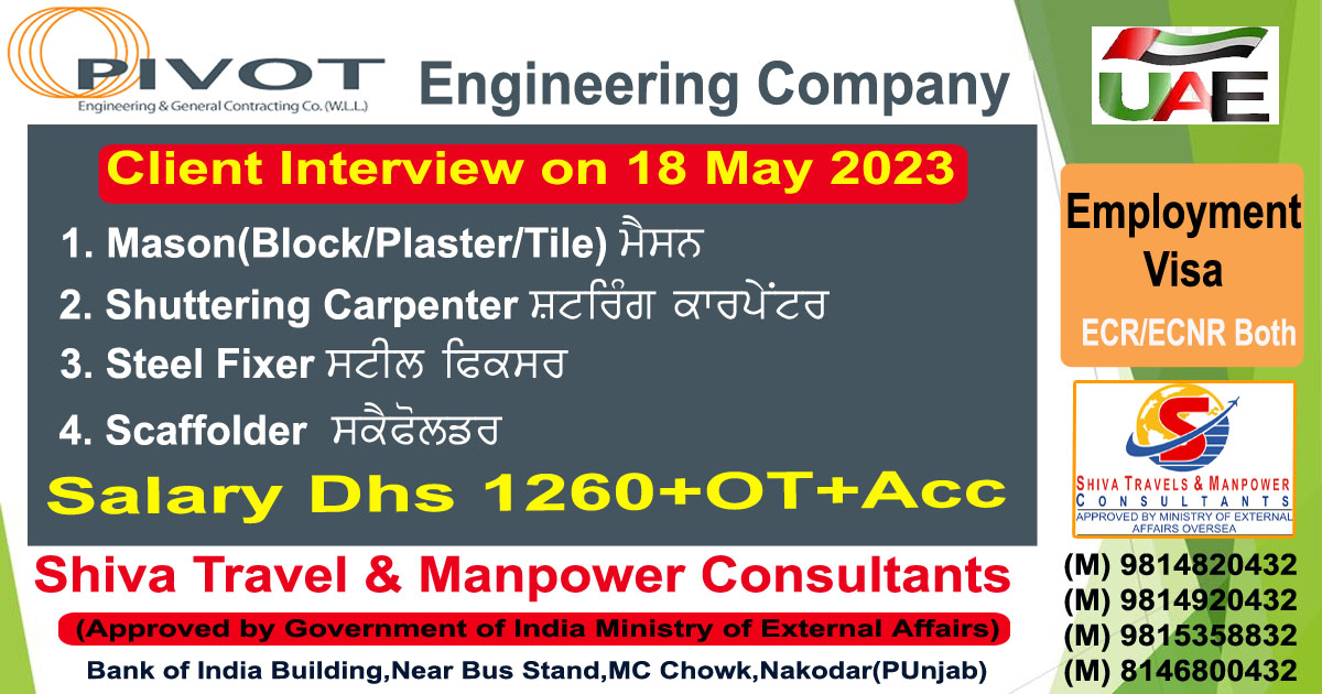 UAE ਦੀ Pivot Company ਨੂੰ ਕਾਰੀਗਰਾਂ ਦੀ ਭਾਰੀ ਸੰਖਿਆਂ ਵਿੱਚ ਲੋੜ ਹੈ